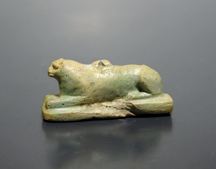 Egyptian Faience Recumbent Lion Amulet