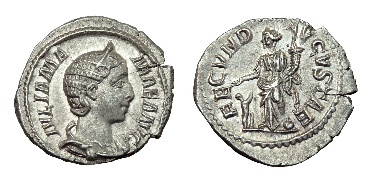 Reverse: FECVND AVGVSTAE:- Fecunditas carrying cornucopia and reaching out to the child at his feet.