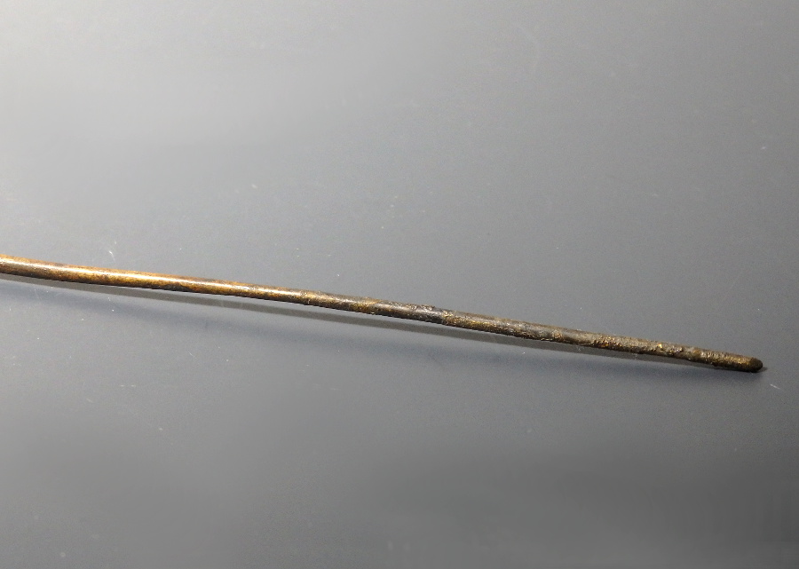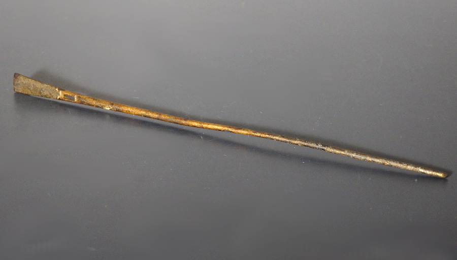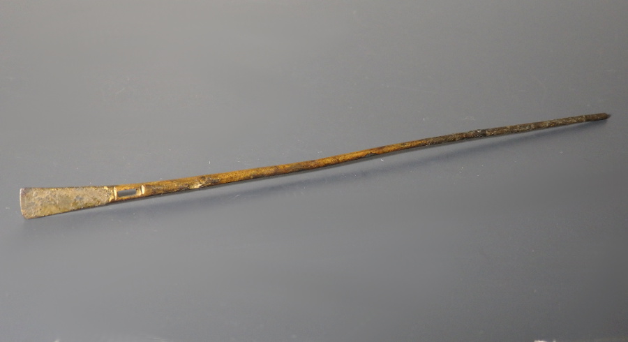 A Roman bronze needle ligula used for extracting ointments or powders from narrow glass phials containers and perhaps also apply them.