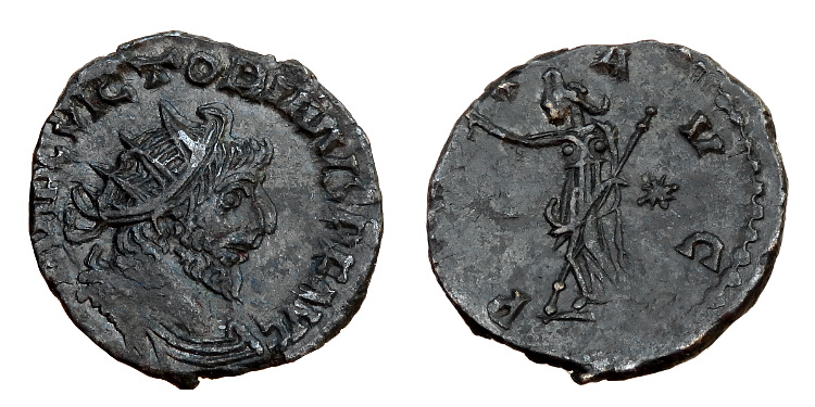 Reverse: PAX AVG, Pax standing to left, holding olive branch and sceptre, V in left field, star in right field.