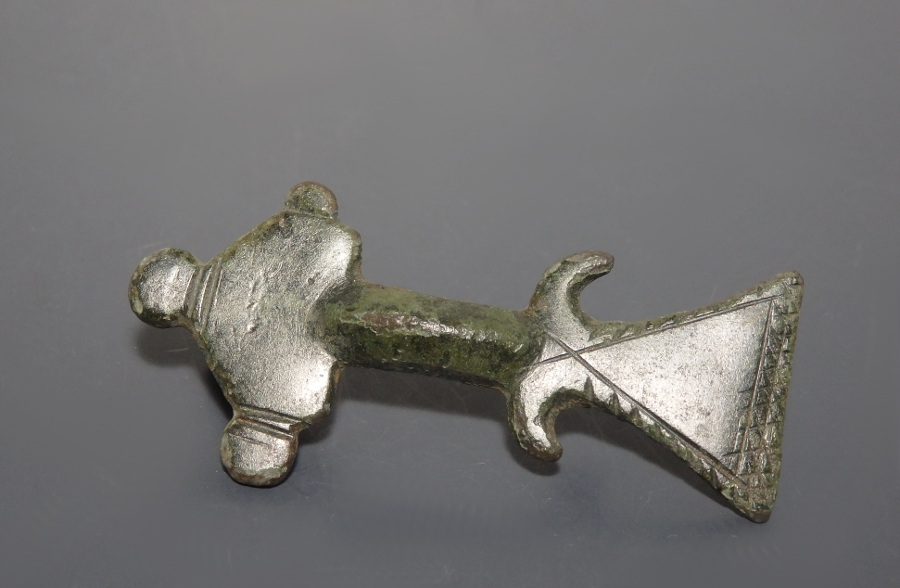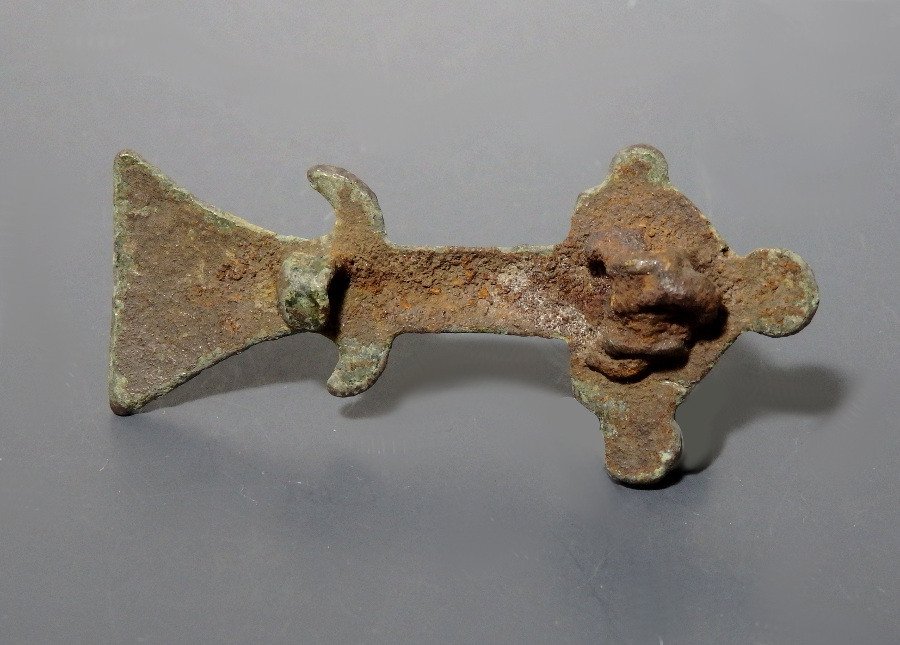 Although pin is missing, it has a smooth dark patina with good detail.